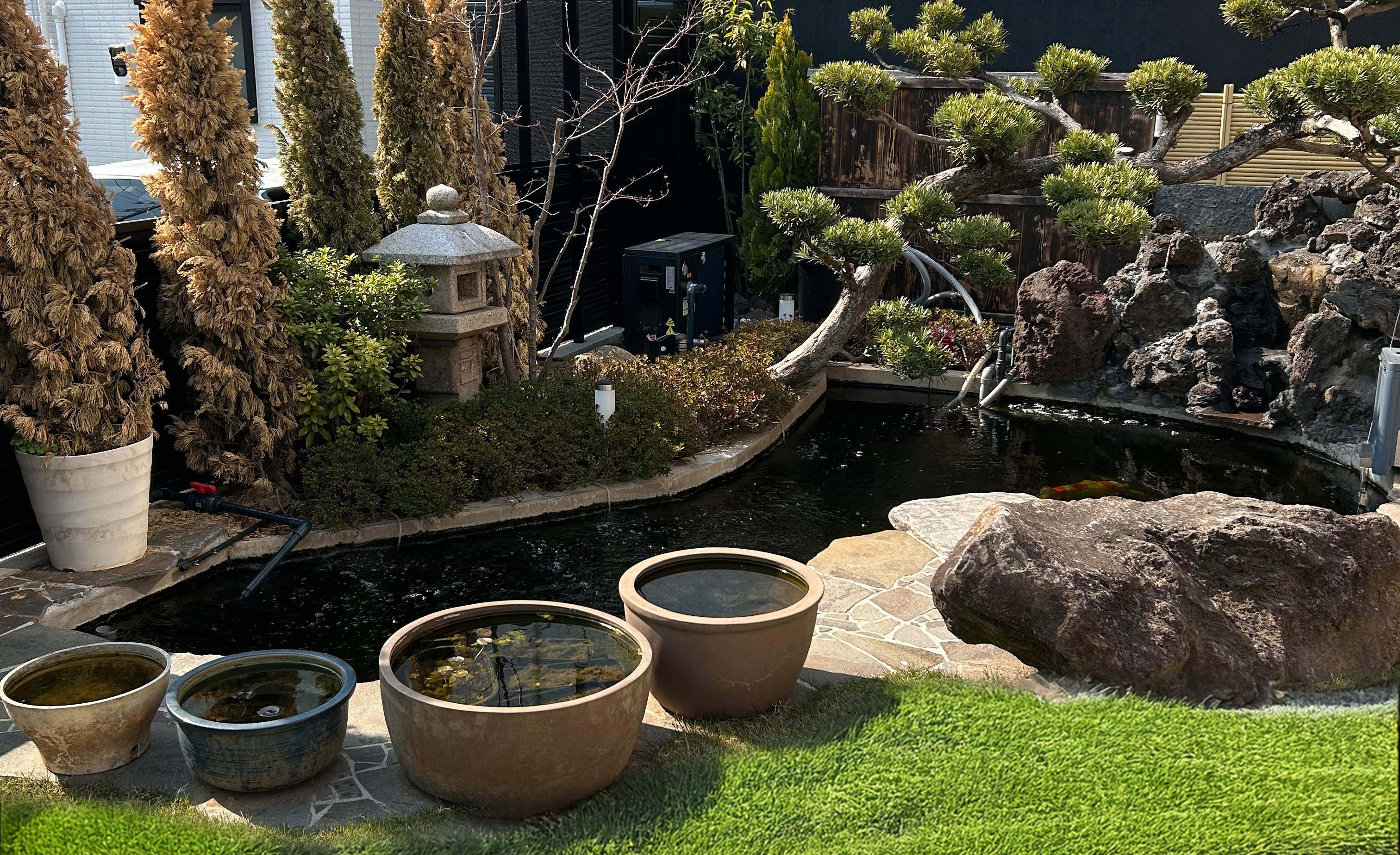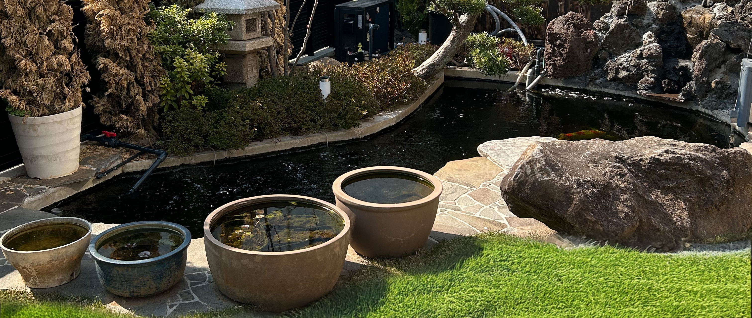 最高品質の錦鯉を厳選してお届けするのはもちろん、池のデザインや施工